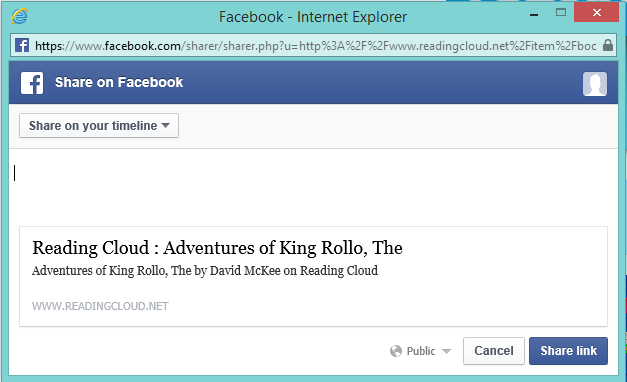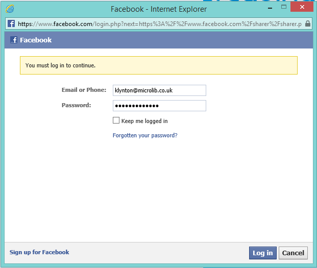 Click on the Facebook Share button to post a link to a Facebook wall. It will then load the Facebook site and ask the user to login.