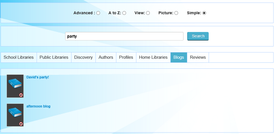 Reading Cloud will then search for Blogs with the details entered in the Quick Search box.